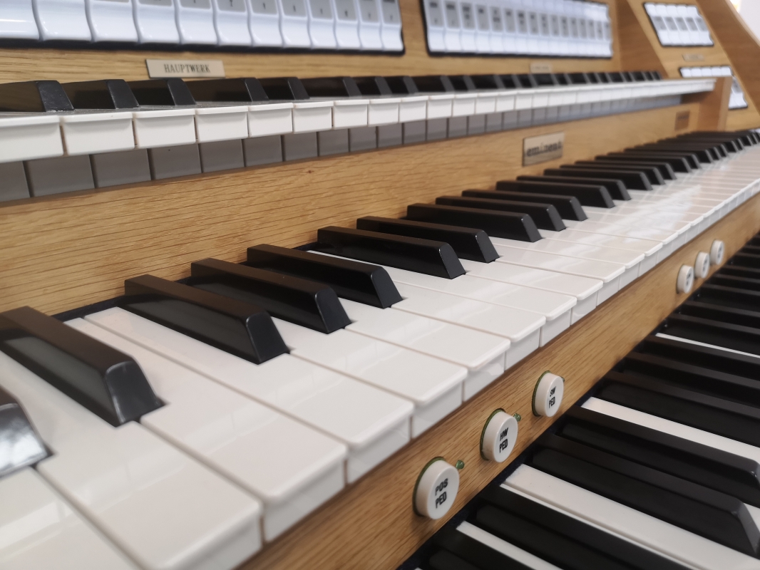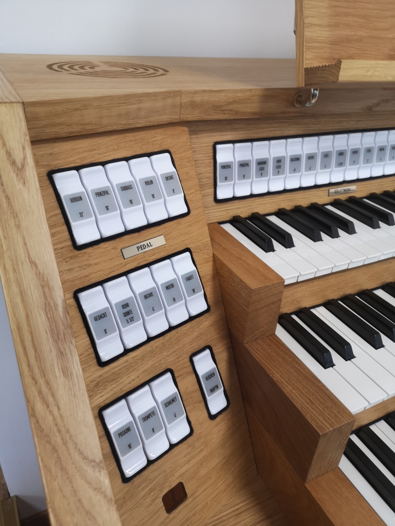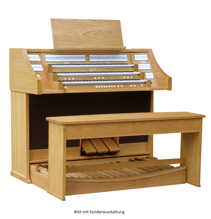 - Notenpult ausziehbar (Entfernung zum Organisten verkürzbar)