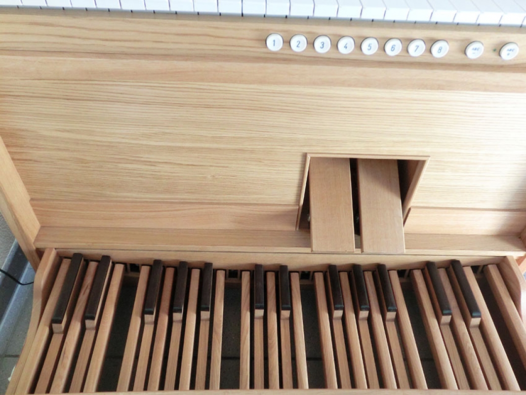 - 33 klingende Register (ausnahmslos Originalregister von verschiedenen Pfeifenorgeln)